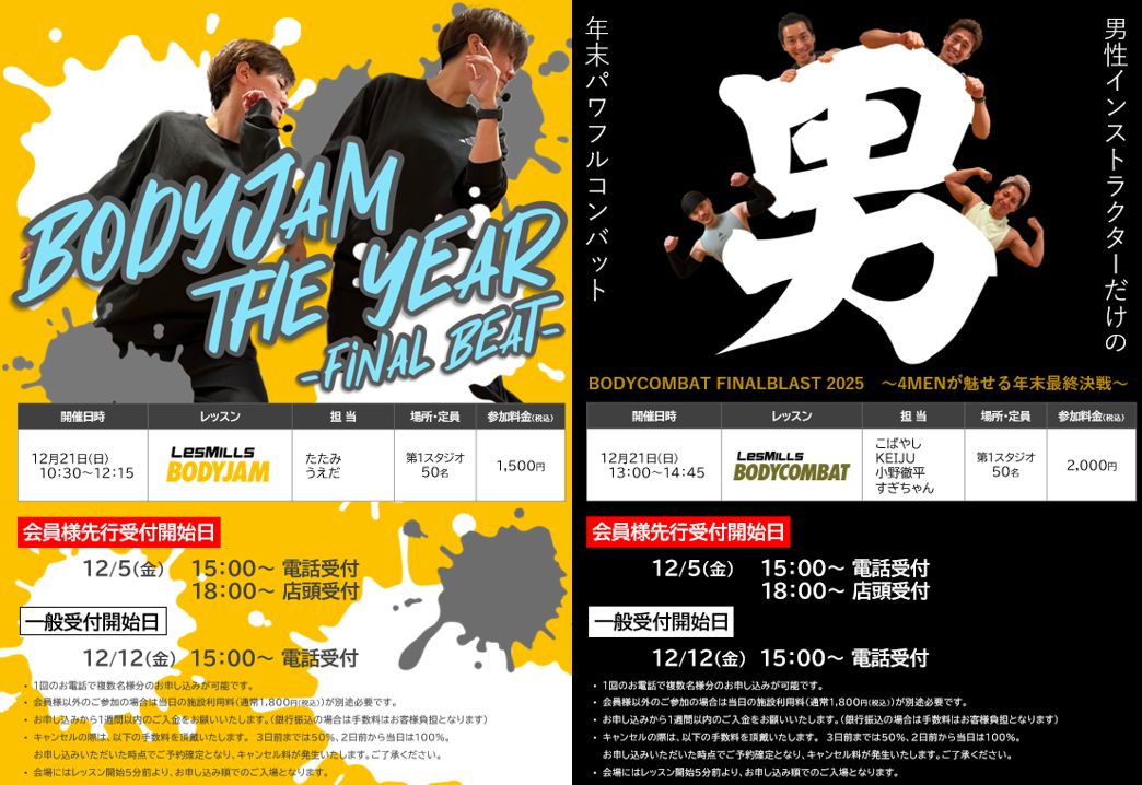 年末恒例!【LesMILLSボディジャム&ボディコンバット特別イベント】開催のお知らせ![]()