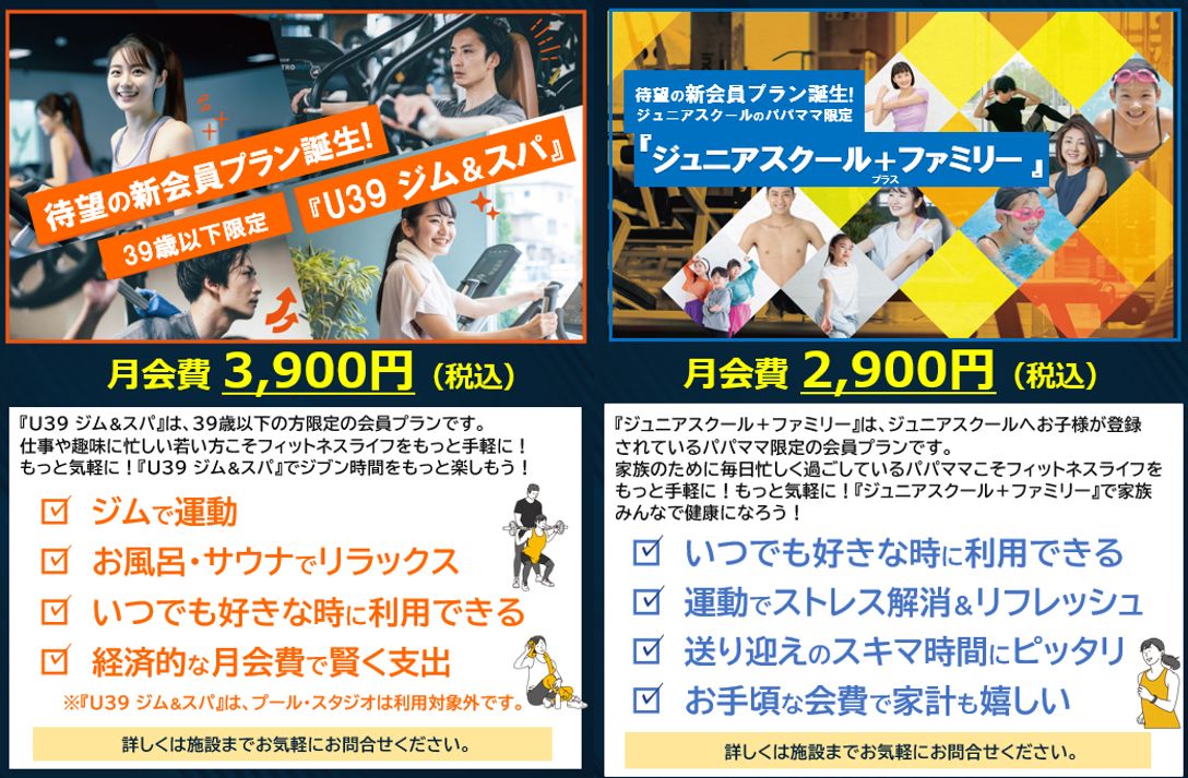 2026年春!待望の新会員プラン誕生!『U39ジム&スパ』『ジュニアスクール+ファミリー』 大好評受付中!