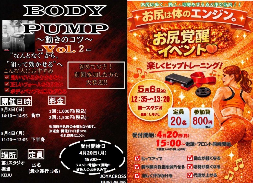 今年のGWはジョイアクロスで楽しくボディメイク&リラックス!
