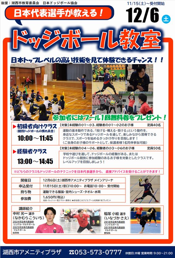 ★開催決定!「日本代表選手が教える ドッジボール教室」実施日12月6日(土)
