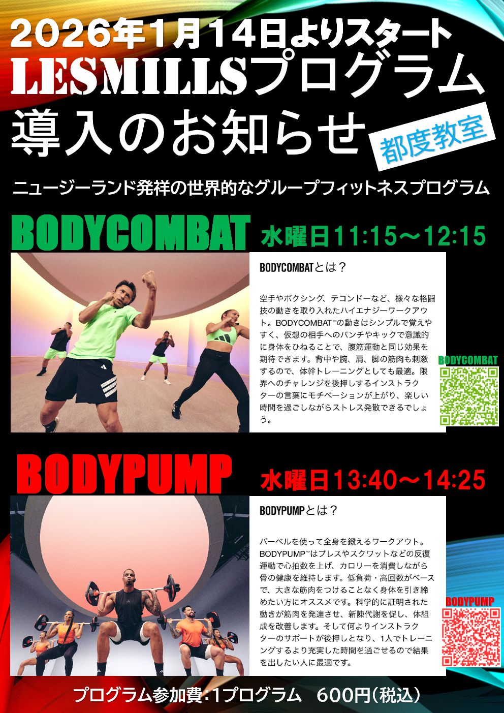 お待たせしました!BODYCOMBAT・BODYPUMP導入のお知らせ