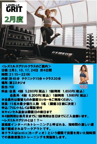 【少人数レッスン】LesMills GRIT 2026年2月度