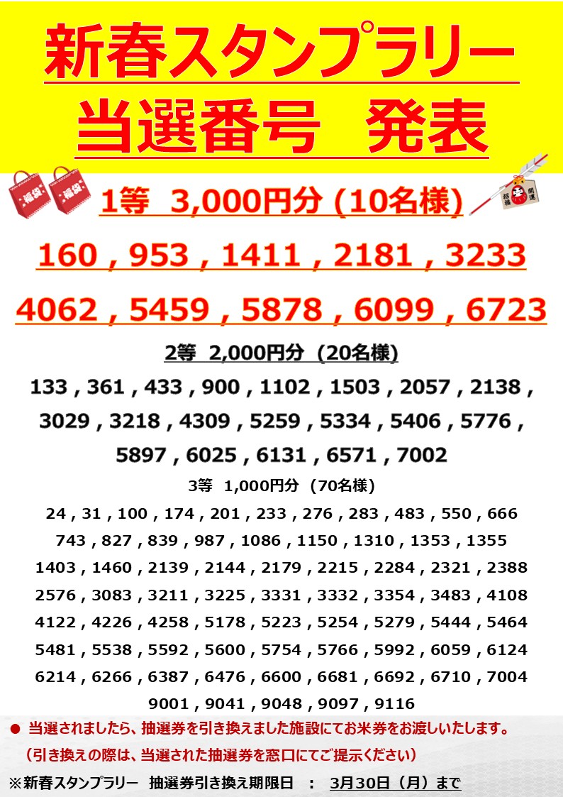 ・新春スタンプラリーの当選者の発表をいたします!