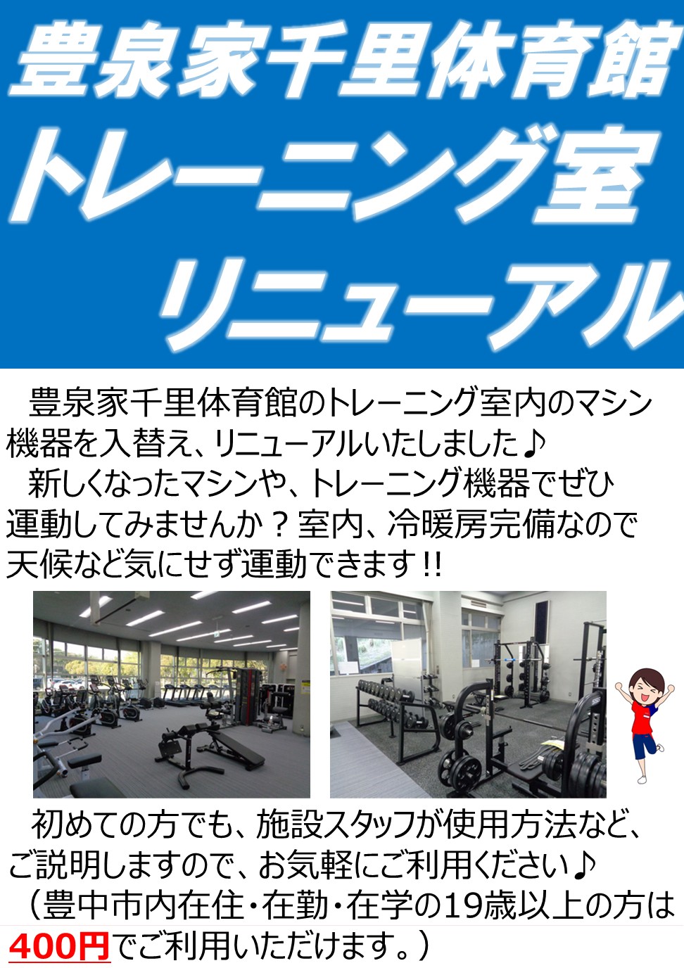 【4/4(土)更新】トレーニング室 リニューアルオープンのお知らせ