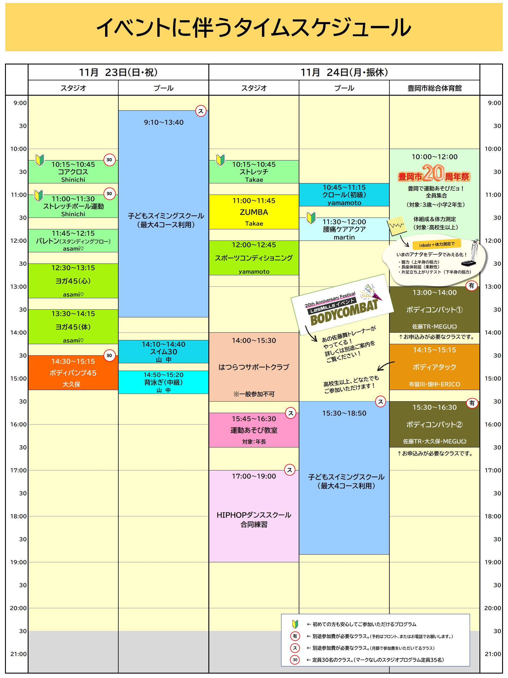 【11月23日(日・祝)24日(月・振休)】イベントに伴うタイムスケジュール